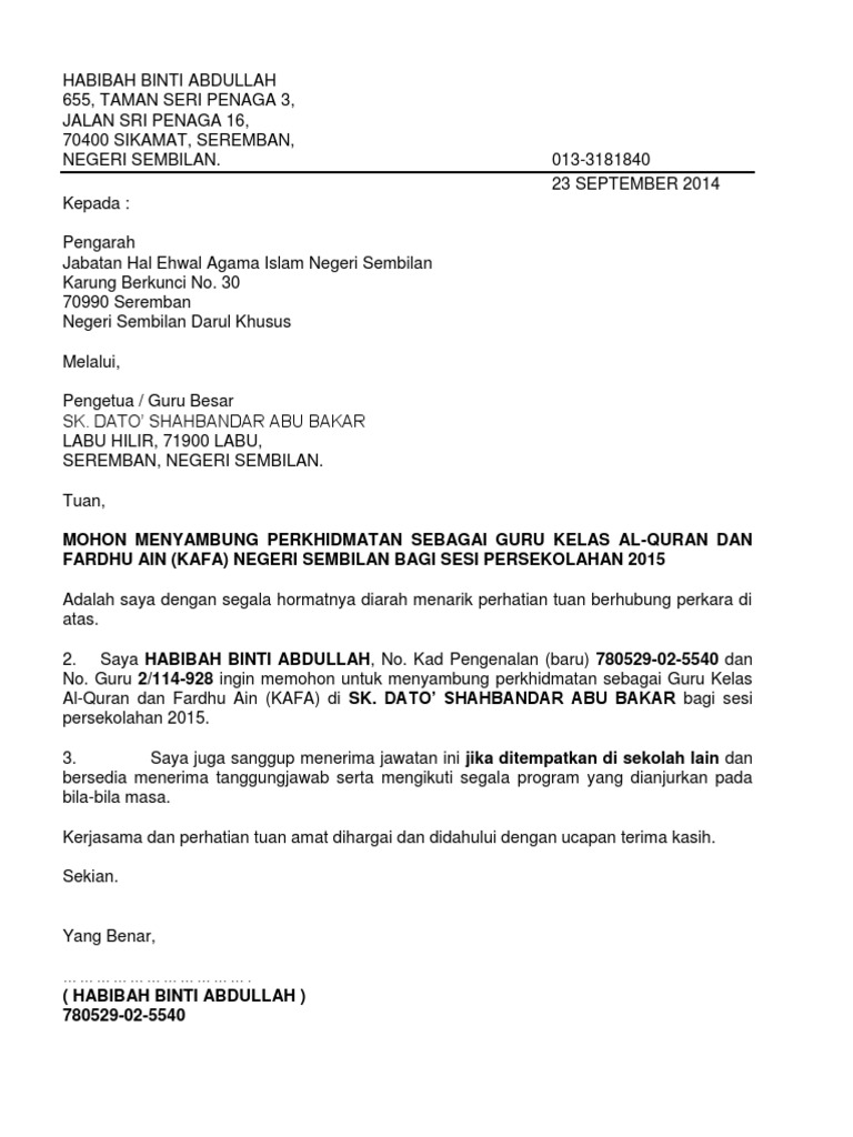 Contoh Surat Lanjutan Kontrak Perkhidmatan Surat Kontrak Untuk Makluman Tuan Tempoh Perkhidmatan Kontrak Saya Akan Berakhir Pada 17 Strickland Greeirds